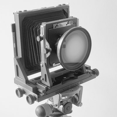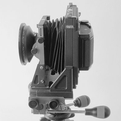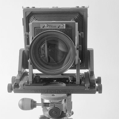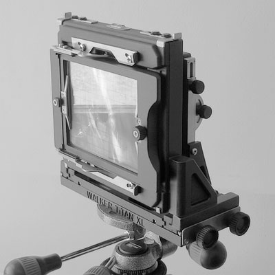 The Walker Titan XL 4x5 Field camera is primarily a wide angled camera with a fixed back which addresses the inevitable problem that afflicts all view cameras when used with extreme wide angle lenses, namely parallelism of the front and rear standards; critical depth of focus declines as focal length diminishes as does the need for swings and tilts.